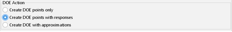 Let’s say we have a design generated by DOE. Now, we need to evaluate the responses for each of the points in the design. If this process is experimental, then the user will evaluate them physically. But let’s say that instead, we have mathematical equations in the form of a script or simulation to evaluate the responses. Then, we essentially need to run the script or simulation for each design point and store the responses. This process can be automated using the DOE component. To do that, we select the ‘Create DOE points with responses’ radio button.