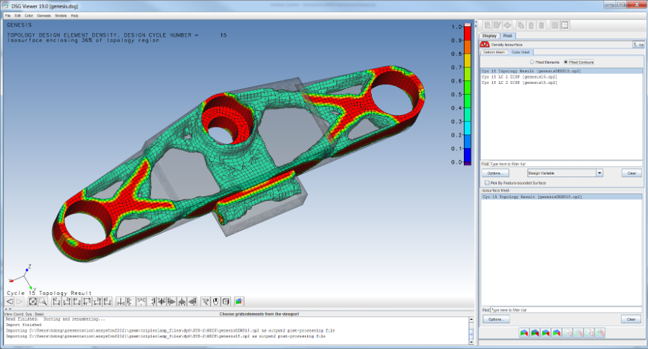 - Access advanced post-processing capability in Design Studio for GENESIS: for example, model cutaway view, overlay of analysis results with topology density isosurface, and etc.