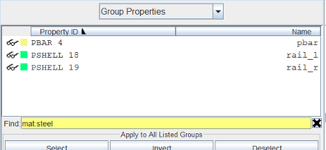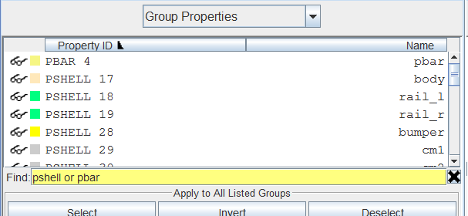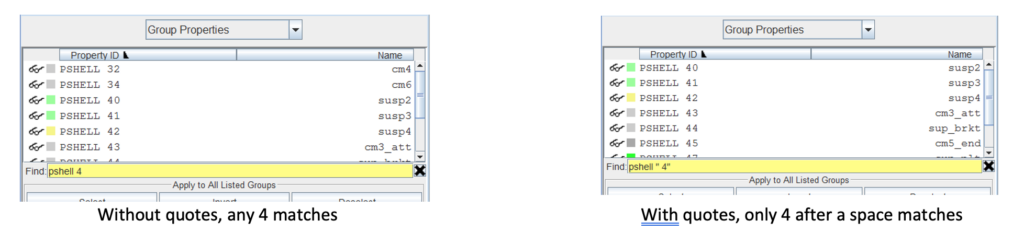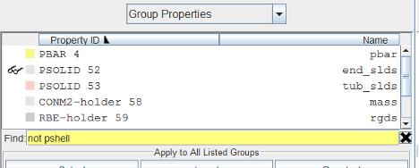 Finite element models often contain very large amounts of data.  Design Studio helps you organize the data by dividing it into fundamental tab areas: Analysis, Topology, Design, or Post.  Data is further subdivided into categories, for example, the Analysis Tab has Static Loads, Materials, Group Properties, and others, while the Design Tab has Design Variables, Sizing, Shape Domains, and others.  Within each category, the interface presents a list of items of the appropriate type that exist in the model.  Even with this categorization, the lists can sometimes be quite large.  One often overlooked feature of Design Studio is the ability to quickly filter lists to locate data for inspection or edit.