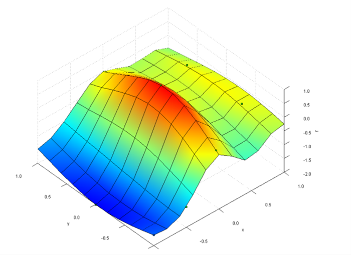 Figure 3 shows a surface constructed from the starting and ending points of the multi-start optimization. This is approximately what the optimizer “thinks” the surface looks like based on its limited dataset. Though the sparsity of starting locations leaves part of the design space under-explored, we are still able to discern several key features of the true surface with high accuracy including the global maximum! These visualizations help illustrate how multi-start gradient-based optimization uses mathematical approximation to quickly find the optima even in design spaces with many local extrema.