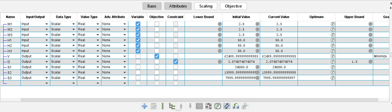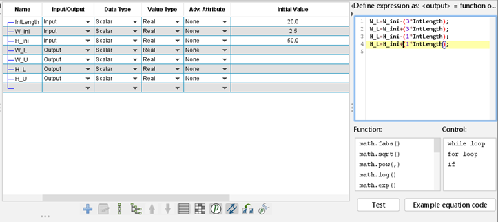 1. Starting with the python component, we derive the upper bounds and lower bounds for the six design variables (W1, W2, W3, H1, H2 and H3) using the initial values and Interval length.